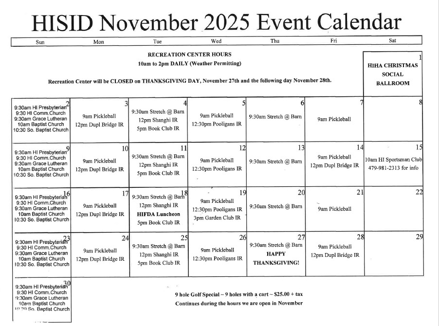 Holiday Island Suburban Improvement District is now taking applications for an open position in the Road Department. Applications can be picked up at the District Office located at 110 Woodsdale Drive, Holiday Island, AR between the hours of 8:00am and 4:30pm Monday through Friday.