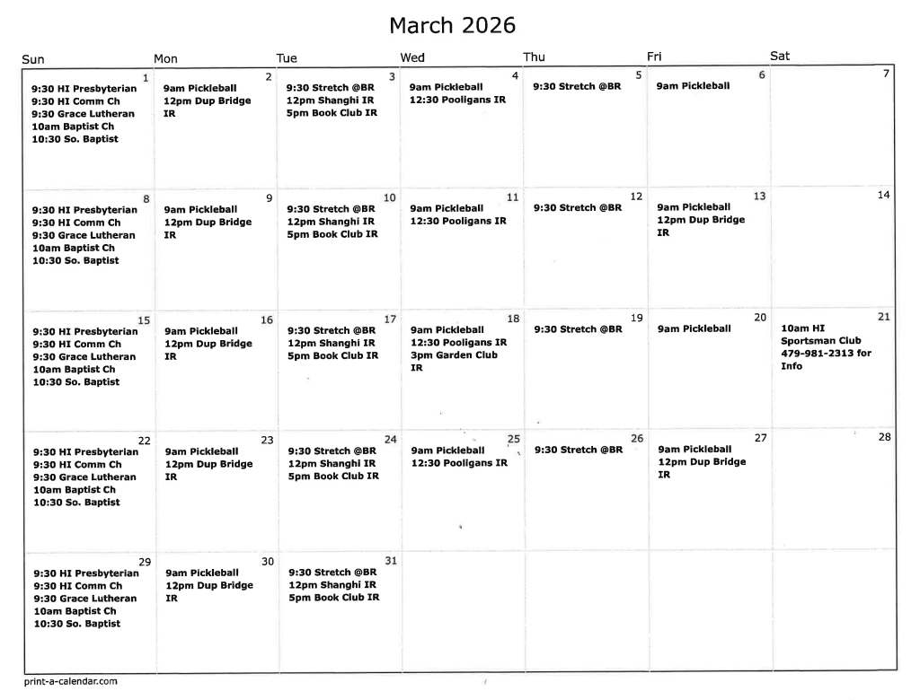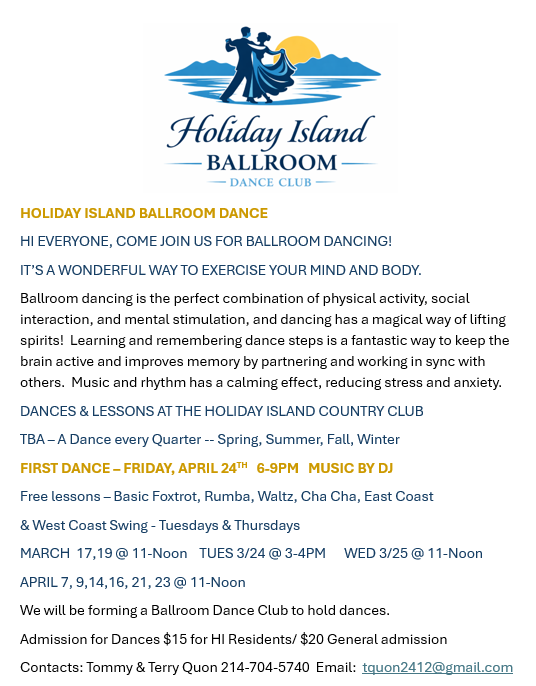 Rich Figgins, Holiday Island District Manager @ districtmgr@holidayisland.us