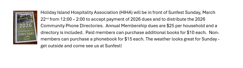 Rich Figgins, Holiday Island District Manager @ districtmgr@holidayisland.us